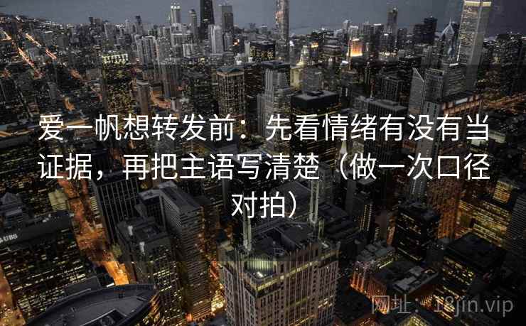 爱一帆想转发前:先看情绪有没有当证据,再把主语写清楚(做一次口径对拍) 在当今的信息时代,网络传播速度之快,信息量之大,我们常常会被各种信息包围。无论是社交媒体上的点赞、评论,还是邮件中的链接分享,我们都可能会不自觉地转发或点击这些信息。...